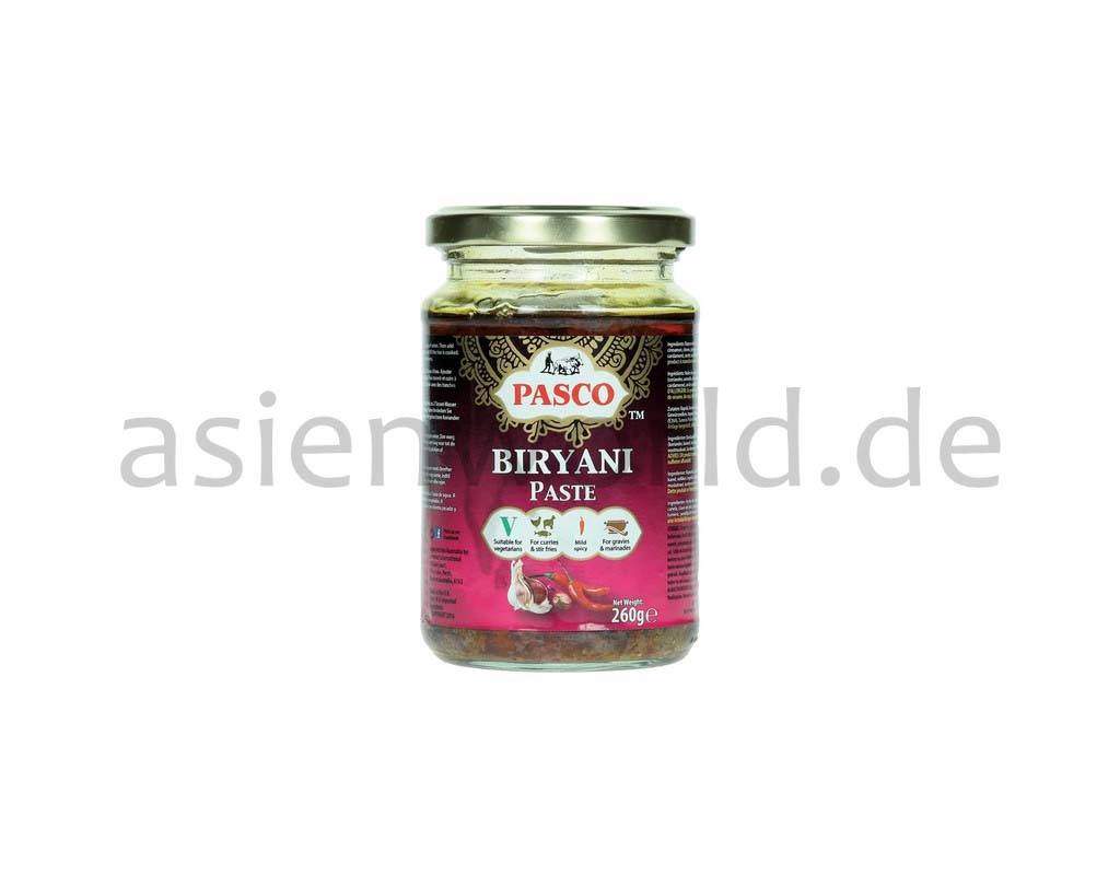 Pasco is one of the market leaders of award winning natural Indian sauces with an authentic taste and easy to prepare. In India rice is a staple for almost all meals to tone down the heat of hot curry dishes. Biryani rice is a spicy rice dish with fried meat and very popular as an accompaniment to curries and stews. Mild Pasco Biryani Paste consists of a balanced combination of spices such as coriander, cumin seeds, ginger, garlic, and chillies. Add fresh ingredients of your choice such as rice, meat or vegetables, and your delicious authentic Indian dish is ready in minutes. Serve your biryani rice with grilled shrimp, nuts and a yogurt dip.