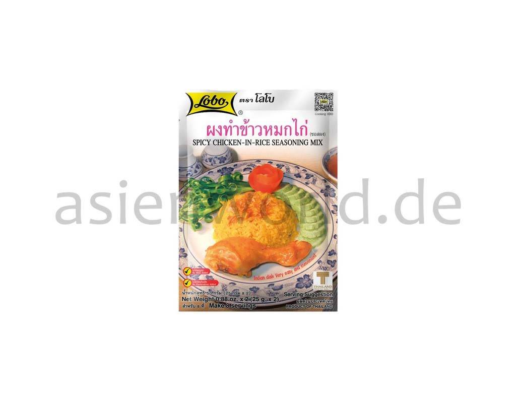 A quick and easy Thai-style spicy chicken-in-rice seasoning mix, and this is DELICIOUS! The flavor is more southern Thai, hint of Indian influence, Thai-Islam fusion. In each envelope you get two individual packets. Rub contents of one package on 1 lb chicken. Marinate 15 minutes. Put chicken parts together with uncooked rice in a rice cooker. Simply turn on the rice cooker and it cooks together for 20 minutes. The result is fragrant, delicious yellow rice and moist chicken. Serve with hot cucumber. No liability is accepted for the information provided. Please check the information on the respective product packaging in individual cases, only these are binding.