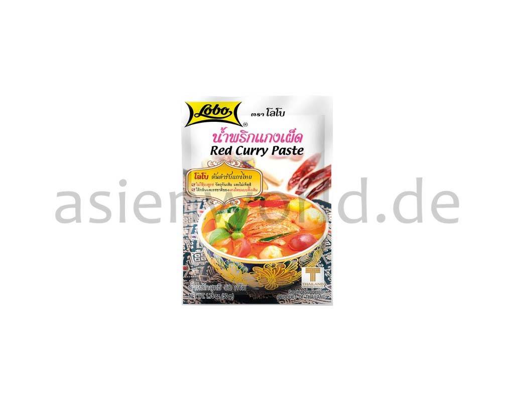 Red curry is not only known in Thailand for its pleasant sharpness. Add meat, vegetables and coconut milk to Lobo Red Curry Paste and create a delicious spicy dish. The main ingredients shrimp paste, lemon grass, galangal, coconut milk and chilli peppers give this dish a typical Thai curry taste, entirely without artificial additives. This dish normally has a soup-like consistency and is served in a bowl and eaten with steamed No liability is accepted for the information provided. Please check the information on the respective product packaging in individual cases, only these are binding.