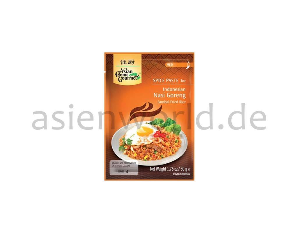 Nasi goreng is an Indonesian national dish with fried rice. Traditionally, nasi goreng is prepared with meat or seafood. The ingredients of the paste such as tamarind, shallots and chillies give your dish a unique Indonesian taste. Use Asian Home Gourmet Indonesian Nasi Goreng noodles with fresh ingredients of your choice such as meat, vegetables or seafood. Asian Home Gourmet spice pastes do not contain flavor enhancers or artificial coloring and preservatives. No liability is accepted for the information provided. Please check the information on the respective product packaging in individual cases, only these are binding.